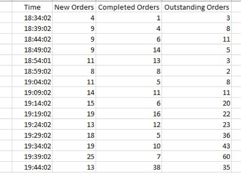 newOrders=orderTable([‘Time’, ‘New Orders’])
